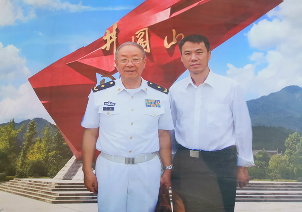 公司董事長黃杰與簽約顧問、全國政協(xié)委員、海軍信息化專家咨詢委員會主任尹卓少將在井岡山合影。