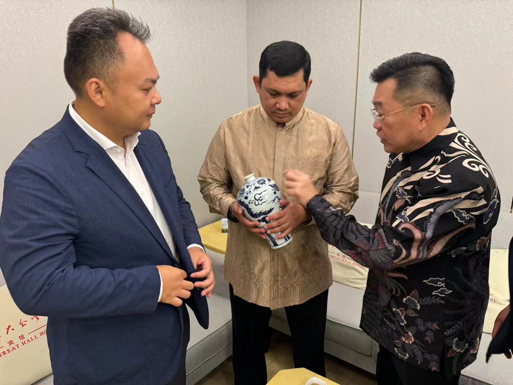 趙章對(duì)國(guó)王陛下及拿督的到來(lái)表示熱烈歡迎,分別向國(guó)王陛下及拿督贈(zèng)送了中國(guó)景德鎮(zhèn)國(guó)家級(jí)大師徐遵華老師的作品。