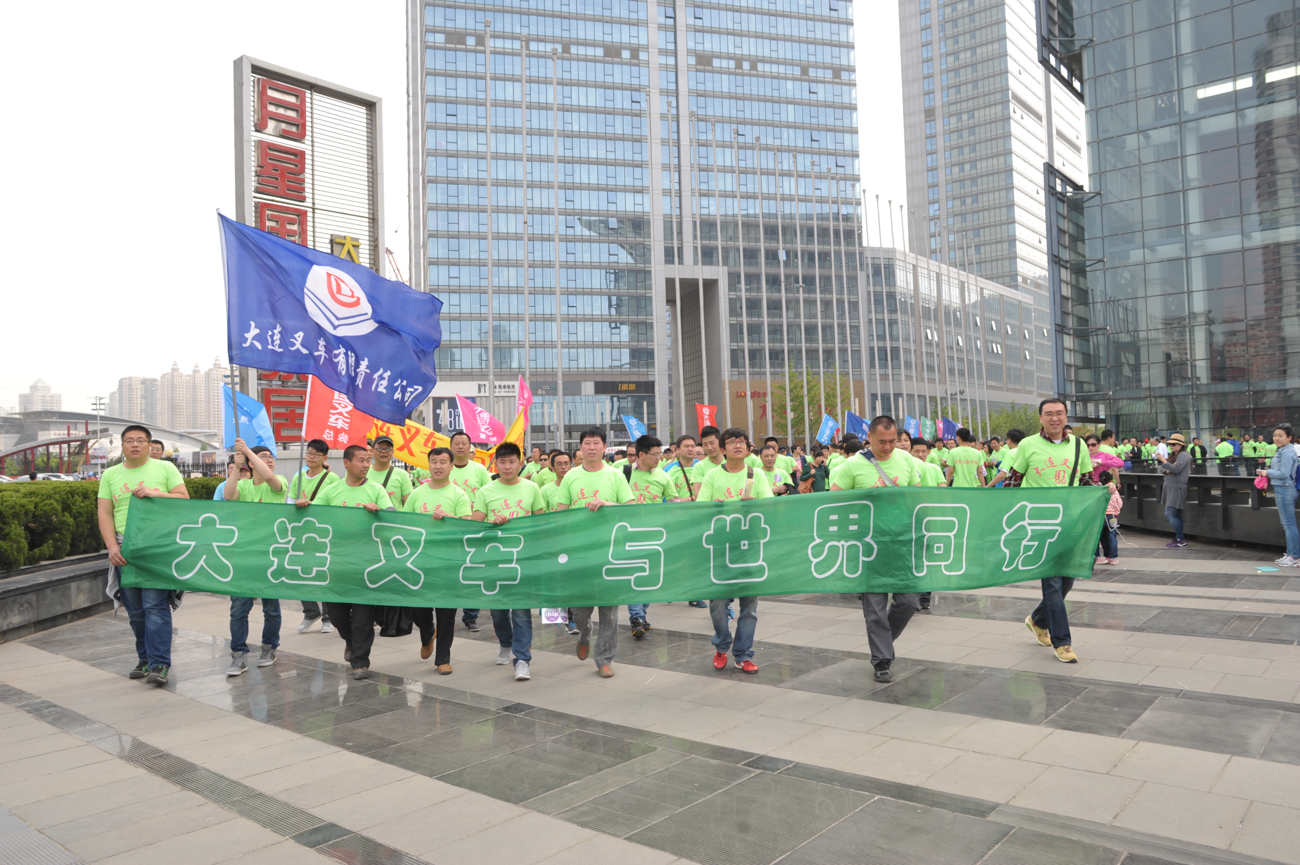 本次徒步大會仍以“健康、和平、交流”為主題,在輕松愉快的徒步過程中,員工們收獲健康、傳遞和平、增進交流、放松精神、愉悅身心、溝通情感。“大連叉車與世界同行”、“大連叉車向全市人民問好”、“大連叉車,叉車搖籃,無尚榮光”、的大型條幅以及“大連叉車與您共贏”、“大連叉車與您同行”的小橫幅在徒步的人潮中格外醒目,引來眾多徒步愛好者、攝影愛好者的目光,四面藍色的大叉廠旗和15面彩色的支會旗迎風飄揚,展示著大連叉車朝氣蓬勃的精神風貌, 大叉綠色軍團似一條巨型長龍,蜿蜒在星海灣徒步大會主會場,隊伍中的每個員工都昂首挺胸、精神抖擻,無時無刻不在向外界展示著作為一名大叉人的那份榮耀和自豪。