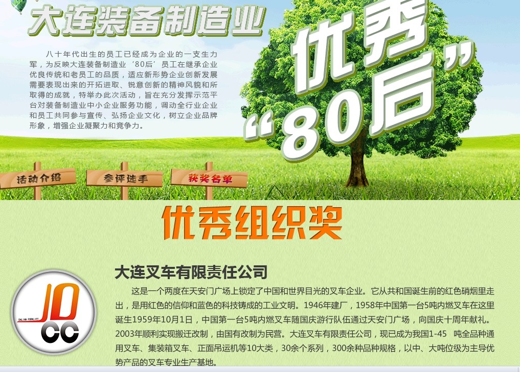 同時組織參評的13家企業(yè)有3家獲得活動組委會表彰,我公司榮登榜首,被評為“大連裝備制造業(yè)優(yōu)秀‘80后’評選活動優(yōu)秀組織獎”!